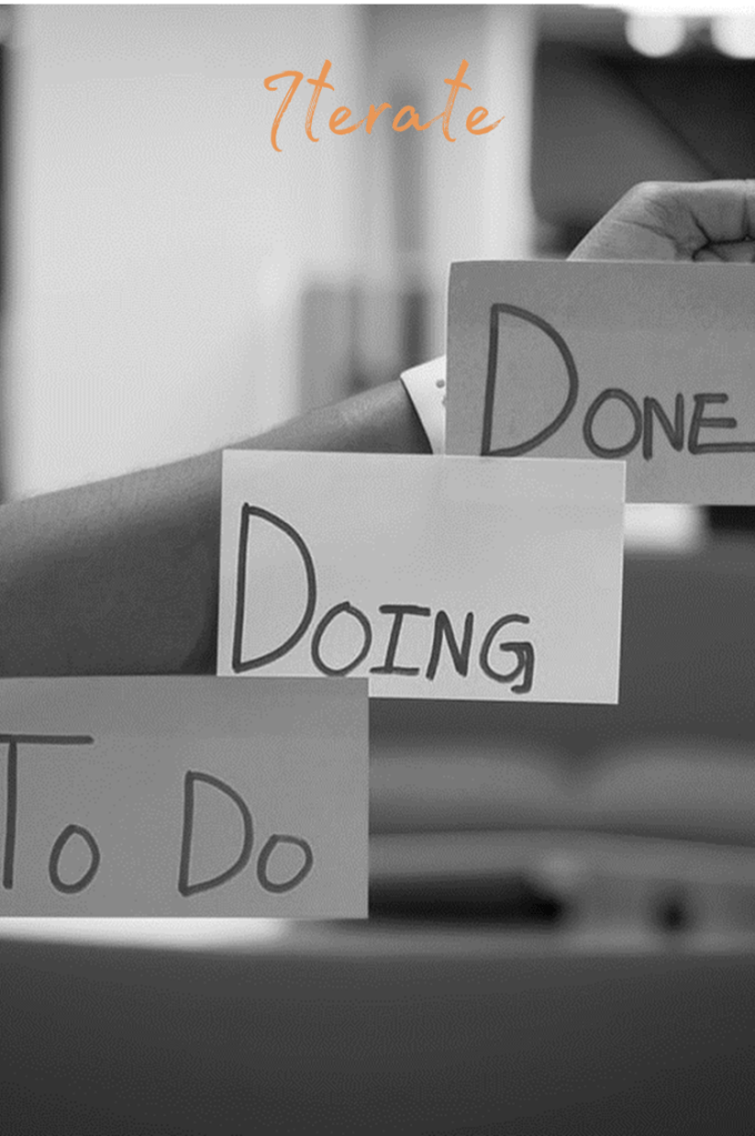 ITERATE| We use Agile and Lean mindsets, values and principles to build and scale innovative solutions that are customer-centric, small, risk-managed in a way that allows teams to learn and grow.