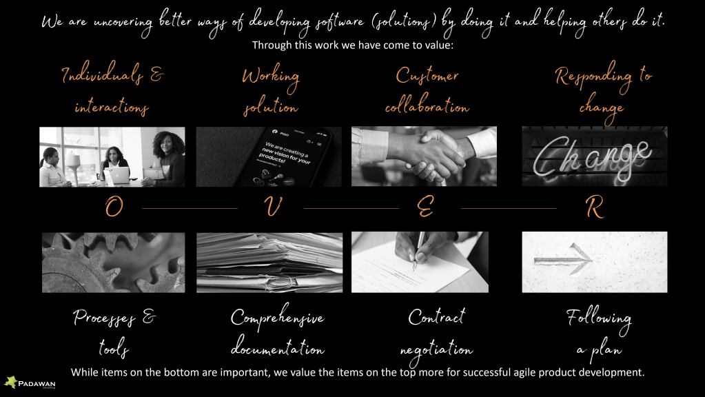 Agile is a set of defined values and principles (Manifesto)